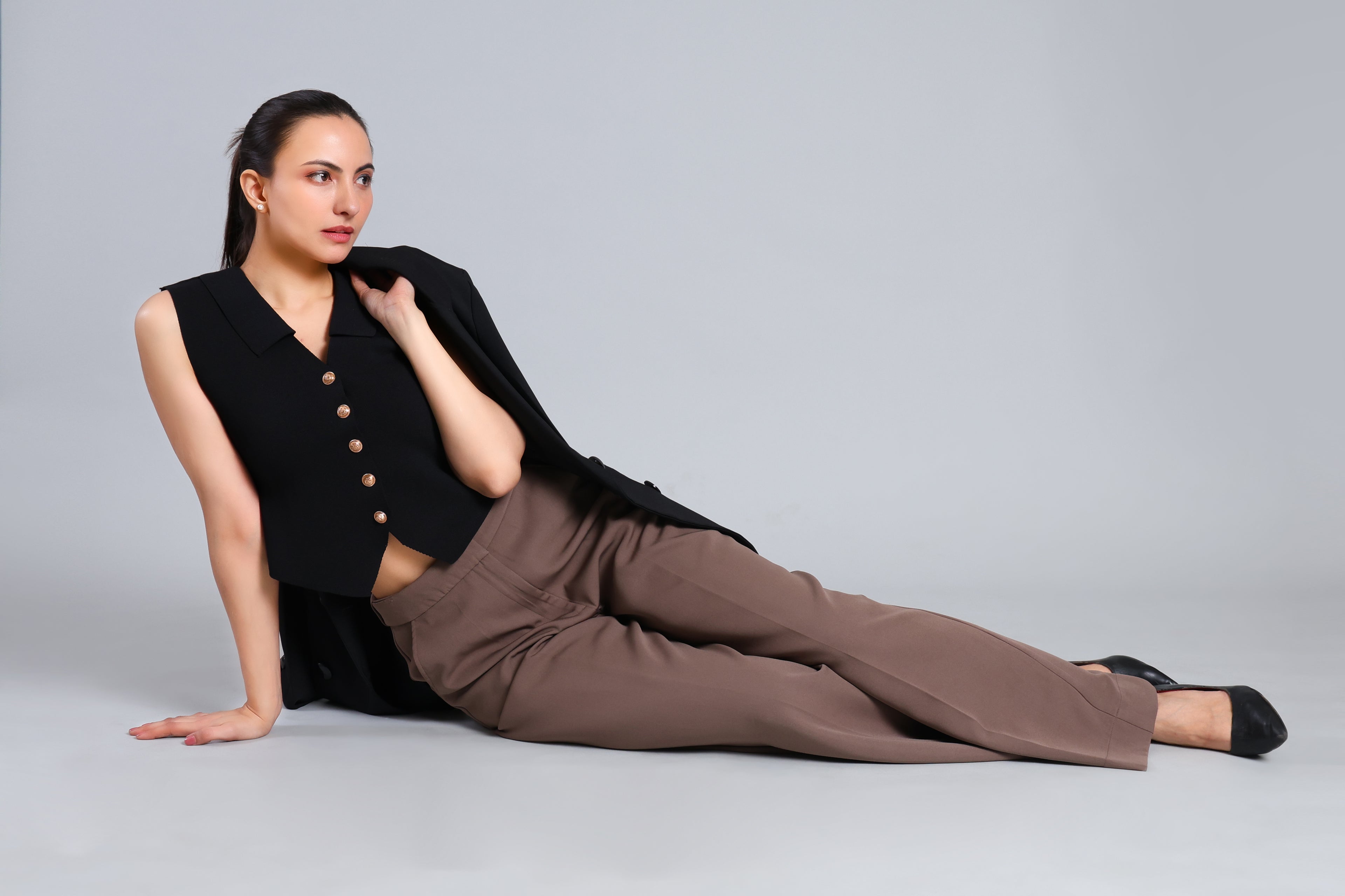 Sculpted Tailored Coffee Trousers